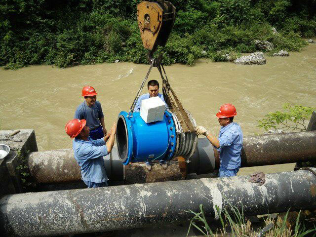 大口徑電池供電電磁流量計安裝現(xiàn)場